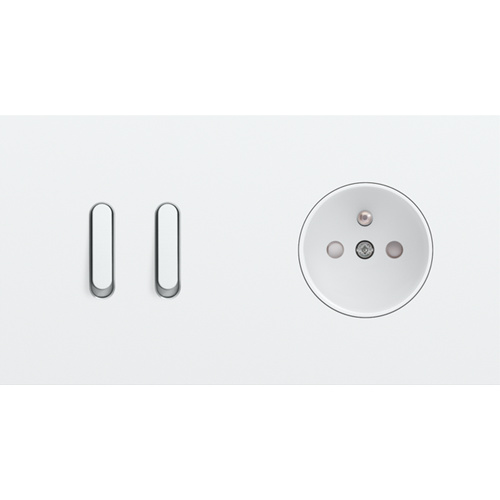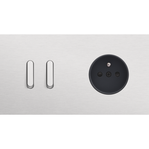 Plaque de recouvrement double, horizontale 71 mm d'entraxe, pour une fonction de commutation double et une fonction de prise de courant, Niko Rocker steel white coated