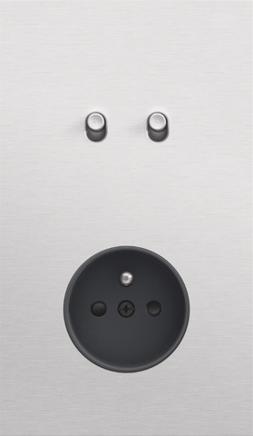 Set de finition pour prise de courant avec broche de terre et obturateurs de protection. Cette plaque centrale doit être utilisée avec une prise de courant d'une profondeur d'encastrement de 28,5 mm et une plaque de recouvrement de prise de courant Niko Rocker ou Niko Toggle. Le set de finition est doté d'une vis noire et d'obturateurs de protection noirs qui s'harmonisent avec le reste du set de finition. Couleur de finition: anthracite coated.