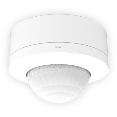 Ce détecteur de présence est un maître DALI-2 pour la commande d'éclairage DALI dans un maximum de quatre zones. Le détecteur est muni de multiples fonctions et peut être commandé sans fil par boutons-poussoirs. Il est conçu pour un montage en saillie et possède un degré de protection IP54. Les zones d'éclairage sont définies lors de la mise en service à l'aide de l'appli Niko detector tool et d'une communication Bluetooth® bidirectionnelle entre un smartphone et le détecteur.