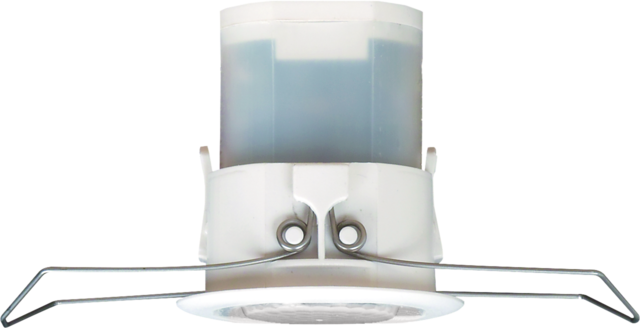 Détecteur à encastrer au plafond, avec dépassement minimal et une zone de détection variable.