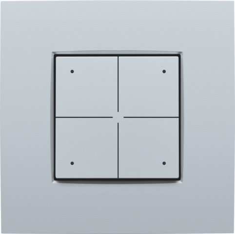 Bouton-poussoir quadruple avec LED et capteurs de confort pour Niko Home Control, couleur sterling coated.