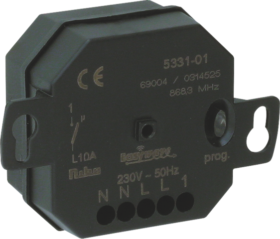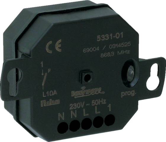 Ce mini-récepteur est utilisé pour la commande de l’éclairage. Il est très compact et peut être encastré facilement. Il fonctionne en combinaison avec des émetteurs muraux ou portables.