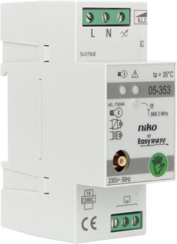 Ce variateur sans fil pour montage sur rail DIN convient pour la variation de lampes à led dimmables, de lampes à incandescence 230V, de lampes halogènes 230V et de tous les types de lampes halogènes basse tension. Choix automatique du principe de variation. La commande s’effectue par bouton-poussoir ou télécommande. Jusqu’à 30 commandes sont possibles. Le variateur peut être utilisé avec ou sans fonction mémoire. Le variateur est muni d’une mémoire supplémentaire pour sauvegarder une ambiance. Le fonctionnement et le diagnostic des erreurs sont indiqués au moyen de LED. Conforme à la norme européenne EN60669-2-1 pour la CEM et la sécurité.