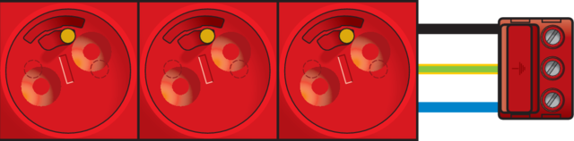 Cette prise de courant triple de couleur rouge convient particulièrement pour un montage dans des boîtes de sol ou des goulottes d’installation.