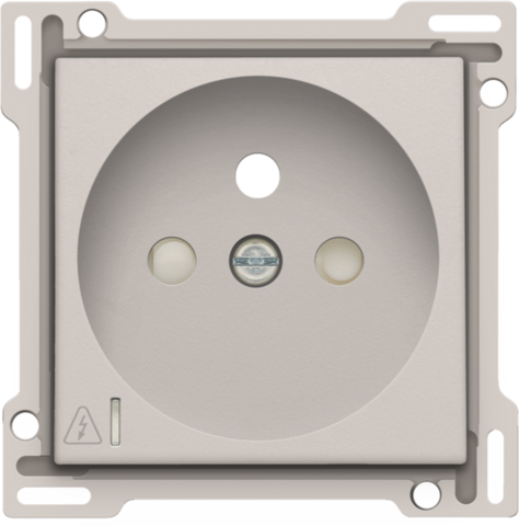 Enjoliveur pour prise de courant avec broche de terre, obturateurs de protection et clapet. Cet enjoliveur s'utilise avec une prise de courant avec protection contre les surtensions de 28,5 mm de profondeur d'encastrement. Couleur de finition: light grey.