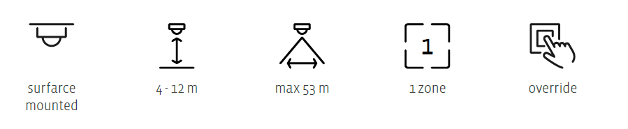L'éclairage s'allume automatiquement lorsque l'un des détecteurs enregistre une activité dans la zone de détection, ou manuellement en activant un scénario. L'éclairage s'éteint toujours automatiquement après une durée déterminée après que la dernière personne a quitté la salle de sport.