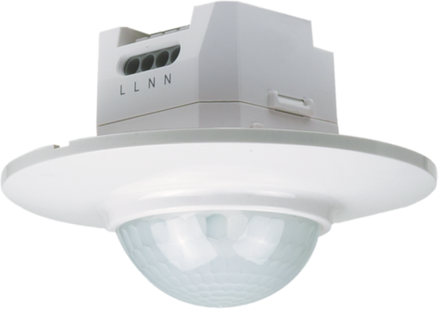 Détecteur de présence, 230 V, secondaire, 14 m, rond, pour boîte d'encastrement, couleur blanc