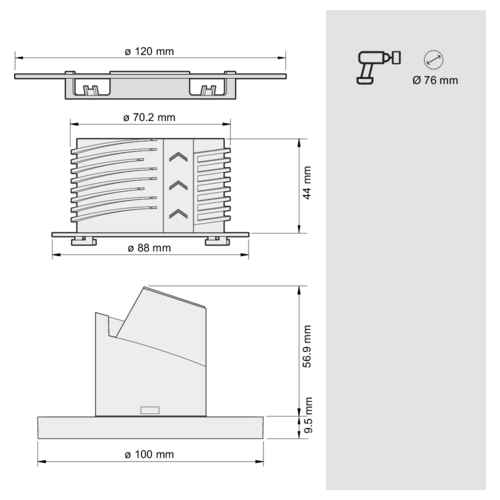 - Dimensions (HxLxP): 100 x 100 x 66.4 mm
