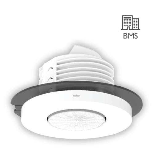 Ce détecteur de présence plat et discret est un détecteur DALI-2 BMS qui peut s'intégrer dans un système BMS. L'étrier de montage SnapFit garantit un montage stable et rapide sur tous les types de faux plafonds avec ou sans dalles amovibles. Le détecteur doit être mis en service avec le logiciel BMS. Les paramètres du détecteur peuvent être modifiés à l'aide de l'appli Niko detector tool et en utilisant le logiciel BMS.