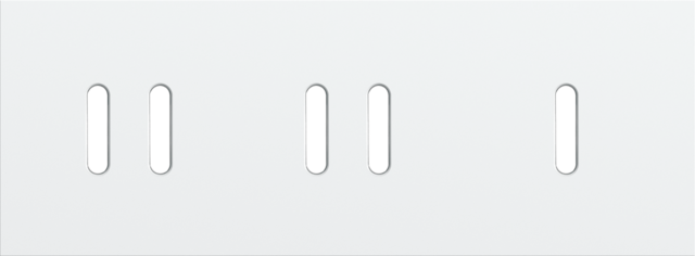 La plaque de recouvrement triple Niko Rocker, horizontale, s'enclenche sur deux fonctions de commutation double et une fonction de commutation simple that have been horizontally installed next to each other with a centre distance of 71 mm. La plaque de recouvrement se combine avec toute barre Niko Rocker disponible pour les fonctions de commutation simple et double. Elle se compose d'un cadre supérieur, d'un guide lumineux et d'un cadre inférieur qui sont interconnectés mécaniquement. Le cadre supérieur est en acier. Le cadre inférieur est en polycarbonate (PC) blanc + acrylique-styrène-acrylate (ASA), white coated. L'épaisseur du cadre supérieur est de 2 mm, celle du cadre inférieur de 6 mm.
