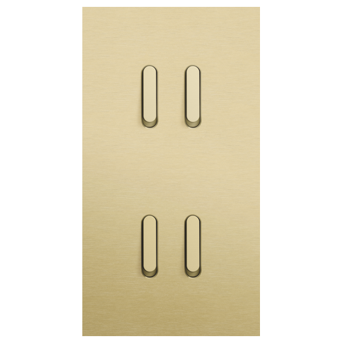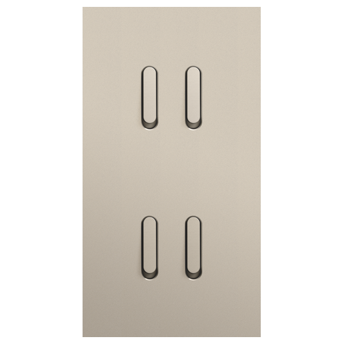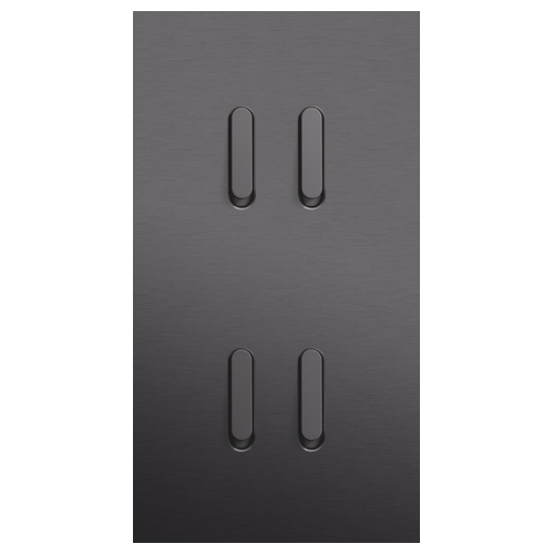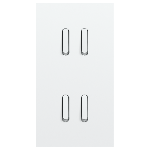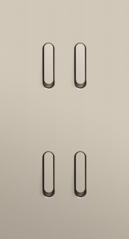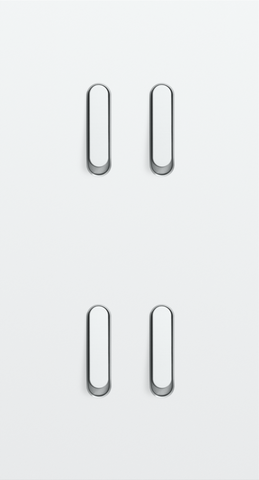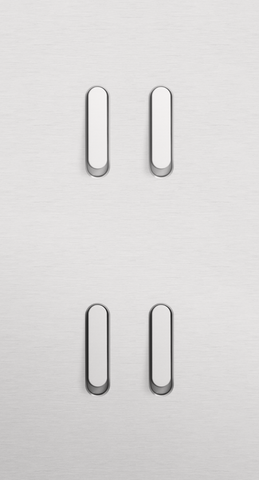 La plaque de recouvrement double Niko Rocker, à orientation verticale, s'enclenche sur deux fonctions de commutation double qui ont été installées verticalement les unes au-dessus des autres avec un entraxe de 71 mm. La plaque de recouvrement se combine avec toute barre Niko Rocker disponible pour les fonctions de commutation simple.