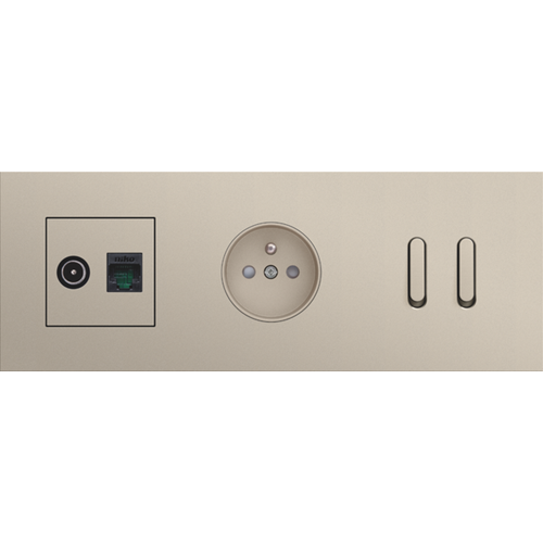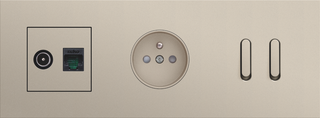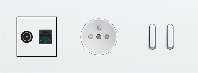 Une fonction de 45 x 45 mm, une fonction de prise de courant et une fonction de commutation double, horizontale 71 mm d'entraxe, Niko Rocker