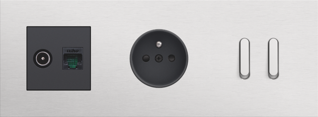 Set de finition pour prise de courant avec broche de terre et obturateurs de protection, pour Niko Rocker et Niko Toggle, anthracite coated