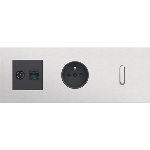 Set de finition pour prise de courant avec broche de terre et obturateurs de protection, pour Niko Rocker et Niko Toggle, anthracite coated