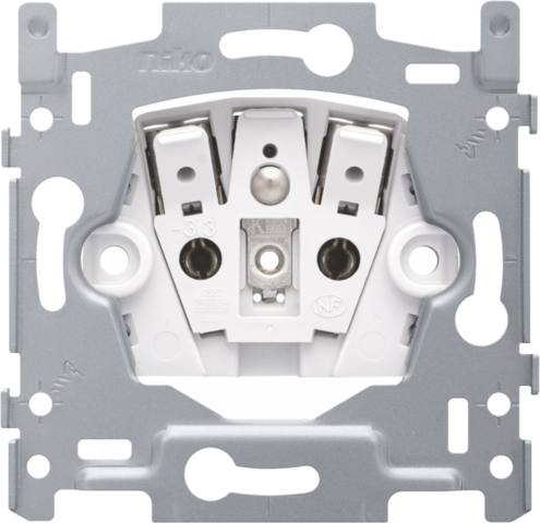Mécanisme pour un bouton-poussoir N.O. ou N.F. avec 4 bornes de raccordement, 10 A/250 Vac. Le socle est équipé de fixation par griffes et de bornes à connexion rapide. Le socle a une profondeur de montage de 26 mm. Le bouton-poussoir N.O. pu N.F. est utilisé pour créer une impulsion d'action comme entrée pour les télérupteurs et les systèmes domestiques intelligents. Un Niko Rocker ou un Niko Toggle et la plaque de recouvrement d’une couleur au choix doivent être commandés séparément.