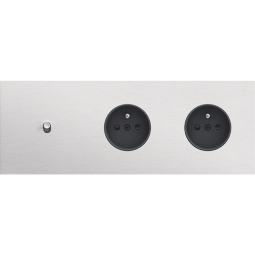 Plaque de recouvrement triple, horizontale 71 mm d'entraxe, pour une fonction de commutation simple et deux fonctions de prise de courant, Niko Toggle steel white coated