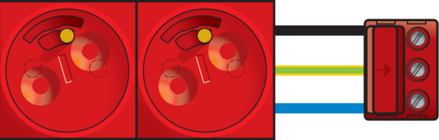 Dit rode tweevoudig stopcontact is uitermate geschikt voor plaatsing in vloerdozen of voor plaatsing in installatiekanalen