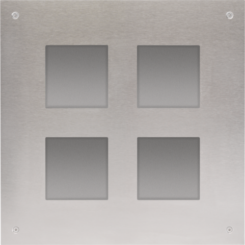 Deze modulaire inbouwreeks biedt een elegante en flexibele oplossing voor projecten (tot 256 wooneenheden). De frontplaat is vervaardigd uit hoogwaardig geborsteld en roestvrij staal van 3 mm dik, en wordt geleverd met bijhorende metalen inbouwdoos.