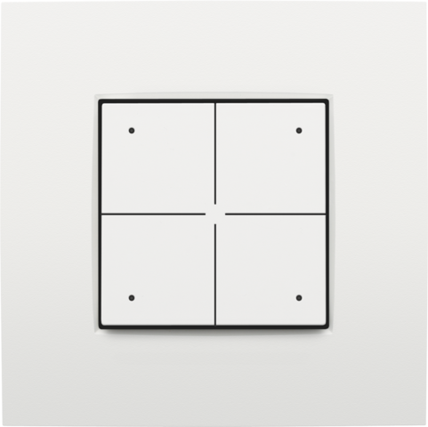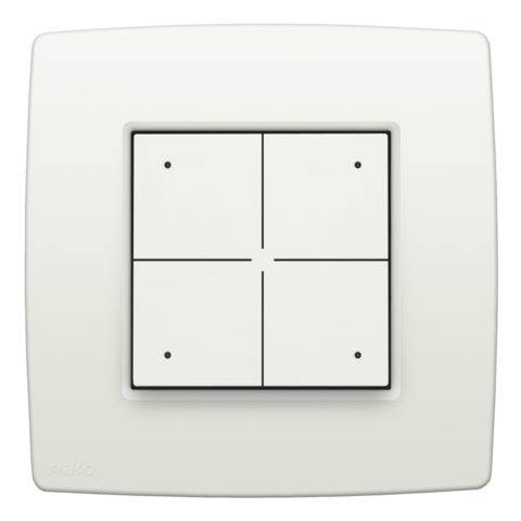 Deze viervoudige drukknop kan ingesteld worden om verschillende acties en routines in een Niko Home Control II installatie op busbekabeling te bedienen. Hij is uitgerust met programmeerbare leds die feedback geven. Daarnaast kan de drukknop dienen als oriëntatielicht wanneer de leds branden.