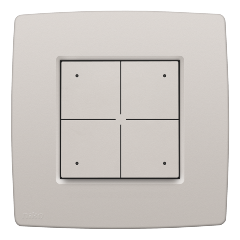 Deze viervoudige drukknop kan ingesteld worden om verschillende acties en routines in een Niko Home Control II installatie op busbekabeling te bedienen. Hij is uitgerust met programmeerbare leds die feedback geven. Daarnaast kan de drukknop dienen als oriëntatielicht wanneer de leds branden.