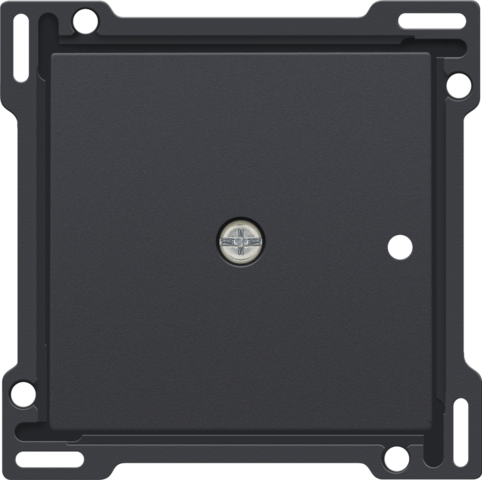 Afwerkingsset voor 1-kanaals inbouw RF-ontvanger met enkelpolig (potentiaalvrij) schakelcontact of inbouw RF-ontvanger met rolluikfunctie, anthracite coated. De centraalplaat is omringd door een vlakke boord die op de 4 hoeken voorzien is van een rechthoekige opening, waarin zich telkens een multipositionele snaphaak bevindt. De opbouw van de centraalplaat zorgt ervoor dat bij onzorgvuldig pleisterwerk de afdekplaat steeds vlak tegen de muur bevestigd kan worden dankzij de snaphaken. Dit werkt in twee richtingen: als de inbouwdoos uit het pleisterwerk steekt, vangen de multipositionele snaphaken een speling tussen 1 Ã 1,2 mm op; als de inbouwdoos te diep in het pleisterwerk verzonken is, dan kunnen de snaphaken een speling tot 1,8 mm opvangen. De vlakke boord rondom de centraalplaat bevat eveneens 4 ronde openingen die ervoor zorgen dat de afdekplaat correct gepositioneerd kan worden ten opzichte van de centraalplaat. Na montage van het geheel (afdekplaat, afwerkingsset en mechanisme) zijn er, dankzij de vlakke boord aan de centraalplaat, geen metalen delen zichtbaar.