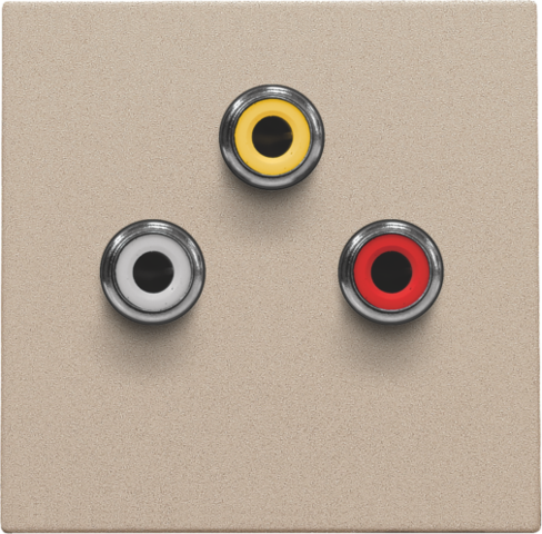 Afwerkingsset met 3 cinch-aansluitingen, ook voor inbouw in installatiekanalen, champagne coated