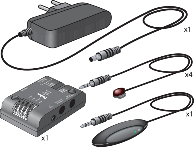 Deze volledige kit bevat alles om al je audiovisuele systemen met één infraroodontvanger te besturen. De kit bevat een boekenplankinfraroodontvanger, een IR-connectieblok, een voedingsblok en 4 enkelvoudige mini-infraroodzenders. Je kan de kit uitbreiden met extra IR-ontvangers.
