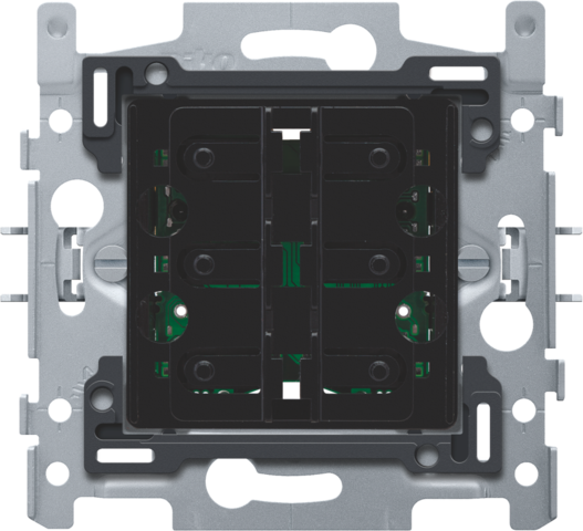 Mechanisme voor een 6-voudige potentiaalvrije drukknop 24 V N.O, met klauwbevestiging. Een afwerkingsset in een kleur naar keuze moet afzonderlijk besteld worden.