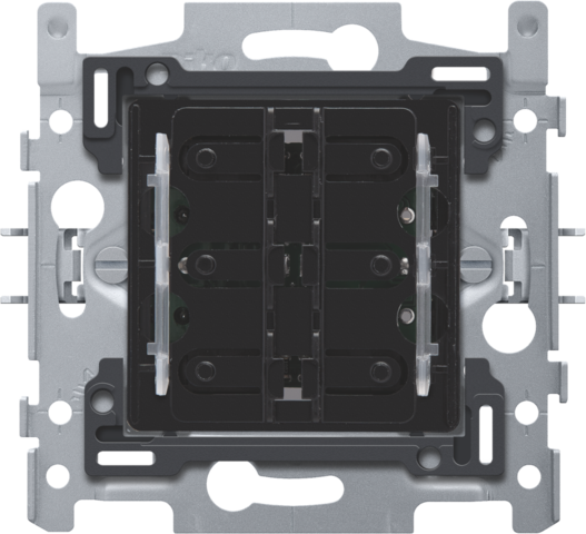 Mechanisme voor een 6-voudige potentiaalvrije drukknop 24 V N.O, met klauwbevestiging. Dit mechanisme is voorzien van een amberkleurige led. Een afwerkingsset in een kleur naar keuze moet afzonderlijk besteld worden.