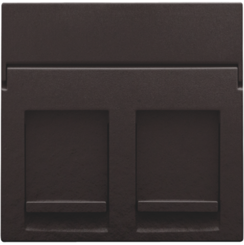 Centraalplaatje voor 2 RJ outlets in een vlakke uitvoering. De centraalplaat bevat een transparant tekstveld waarin je eenvoudig iconen of teksten kan aanbrengen. Afwerkingskleur: Bakelite® chocolate coated.