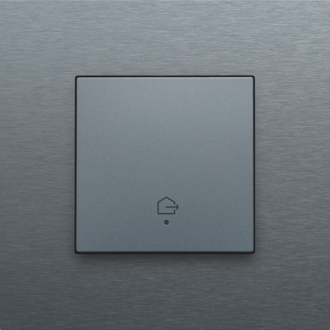 Deze enkelvoudige drukknop met het 'woning verlaten'-symbool kan ingesteld worden om verschillende acties en routines in een Niko Home Control II installatie op busbekabeling te bedienen. Hij is uitgerust met programmeerbare leds die feedback geven. Daarnaast kan de drukknop dienen als oriëntatielicht wanneer de leds branden.