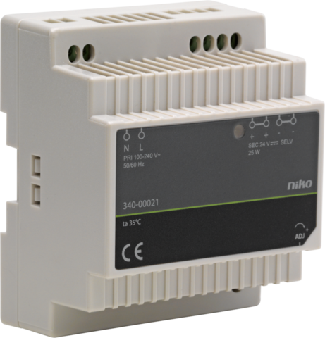 Deze voeding is geschikt voor het voeden van leds en is bestemd voor montage op DIN-rail. Ze heeft een vermogen van 25 W. Deze voeding voldoet aan de Europese normering voor EMC en veiligheid EN 61347-2-13.