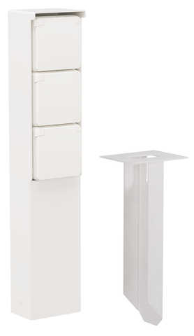 Spuitwaterdichte tuinpaal met drievoudig stopcontact, penaarde en grondpin, wit. Handgemaakt product: er kunnen zich kleine afwijkingen in vorm voordoen