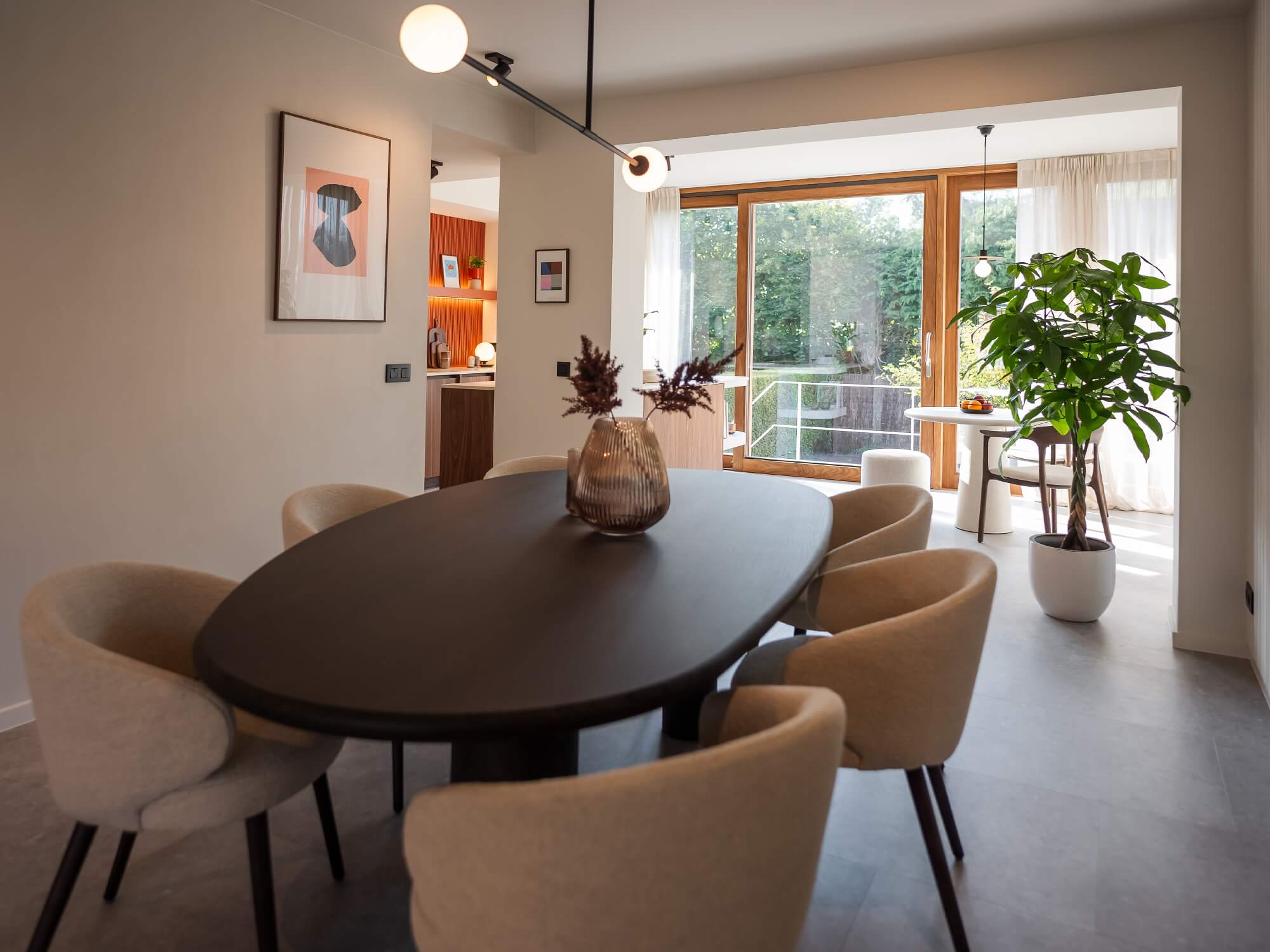"Met elk huis willen we een bepaald verhaal brengen. Dat vind je terug in de allerkleinste details, zoals schakelaars, maar ook de verf en passende deurklinken. Dat zijn de accenten die de identiteit van een woning compleet maken", zegt Eline.