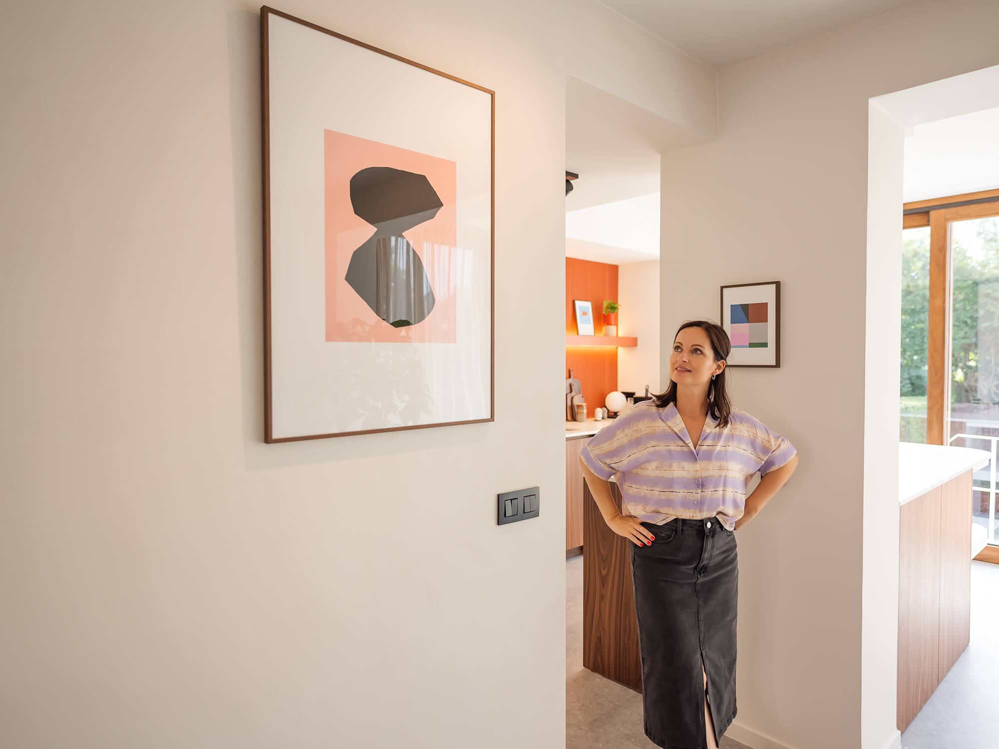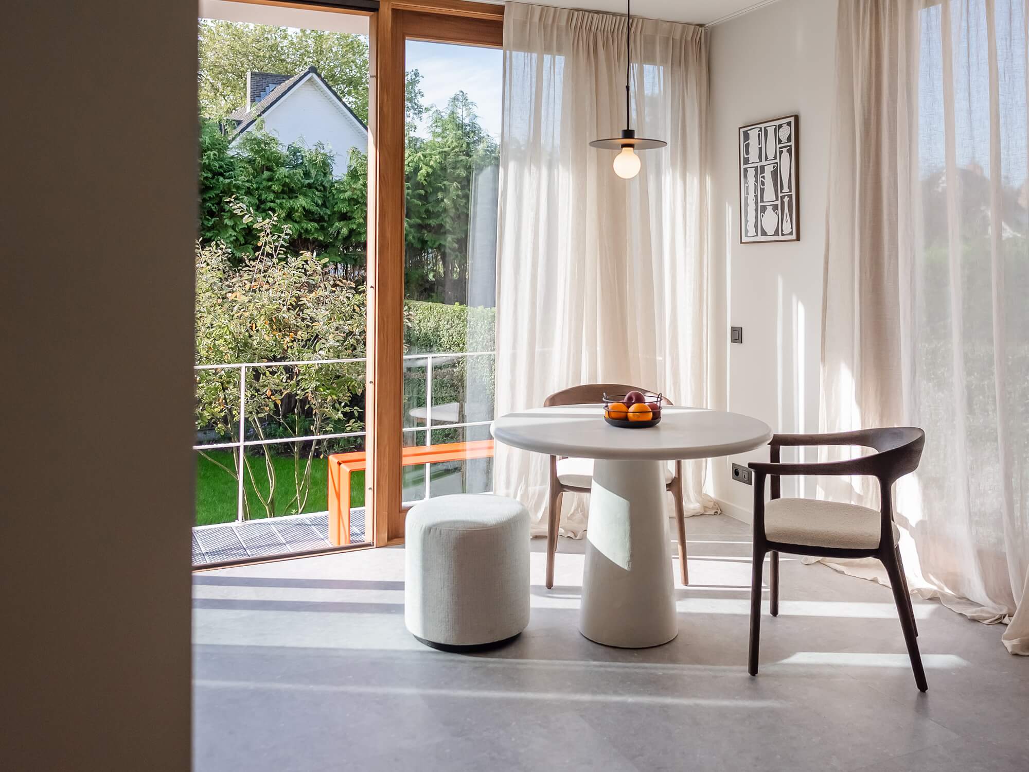"De Niko Intense reeks bleek de perfecte match omwille van de subtiel gebogen frontjes. Deze organische afrondingen echoën door in andere elementen van het huis, zoals in het keukenwerkblad en diverse meubelstukken. Het was belangrijk voor ons dat de schakelaars naadloos integreerden en harmonieus opgingen in het algehele interieurontwerp", geeft Eline aan.