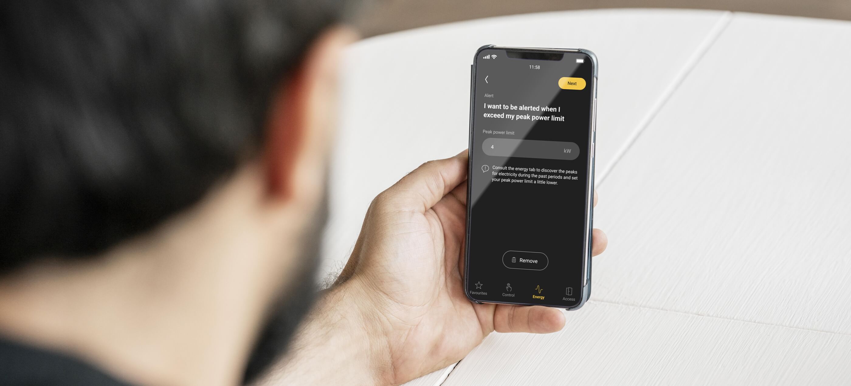 Optimaliseer automatisch je energie-efficiƫntie met energiebesparende routines, zoals de peak mode om je verbruik doorheen de dag te spreiden, een alles-uitknop en slimme verwarmingssturing.