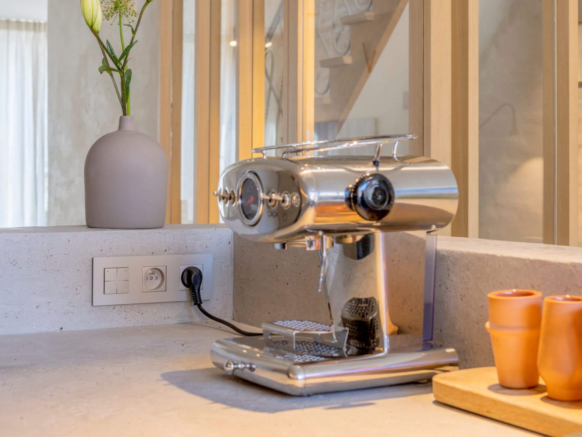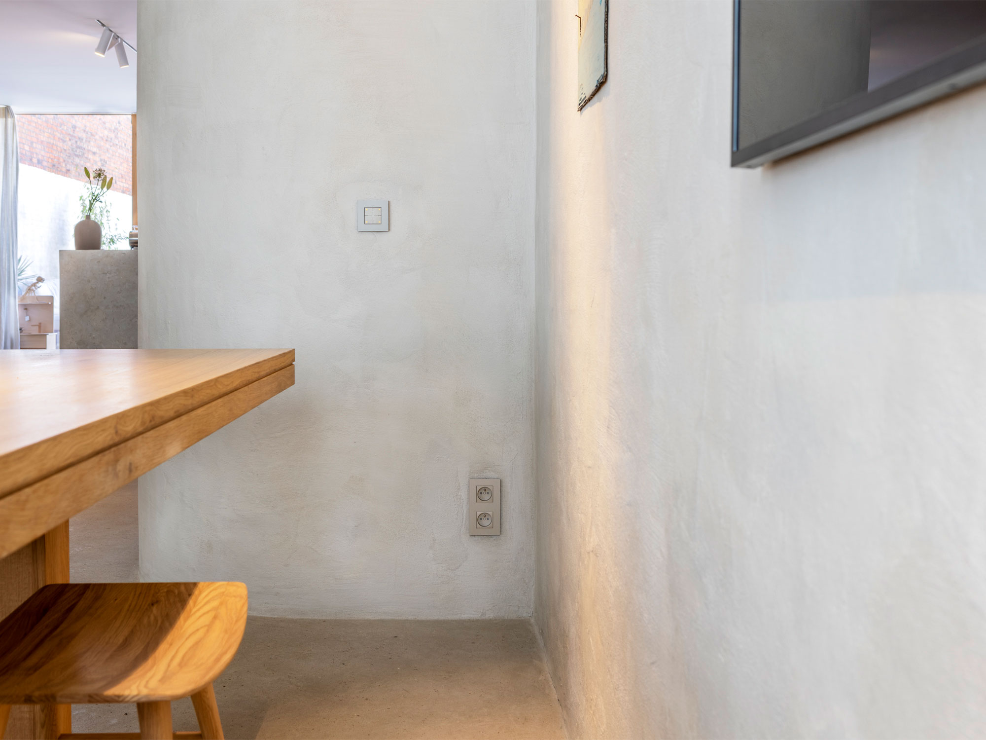 “Voor onze schakelaars en afdekplaatjes hebben we telkens voor 3 verschillende afwerkingen gekozen, afhankelijk van waar in huis ze worden toegepast.”
