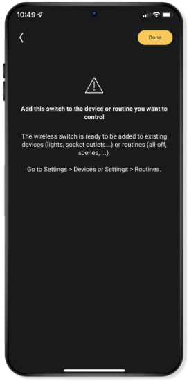 Je krijgt een waarschuwing te zien. Om de draadloze schakelaar te laten werken, is het namelijk nodig dat je de functies van de toetsen programmeert. Gebruik hiervoor de volgende instructies.