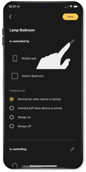 Klik op het potlood naast Wordt bediend door om de schakelaars aan te passen.