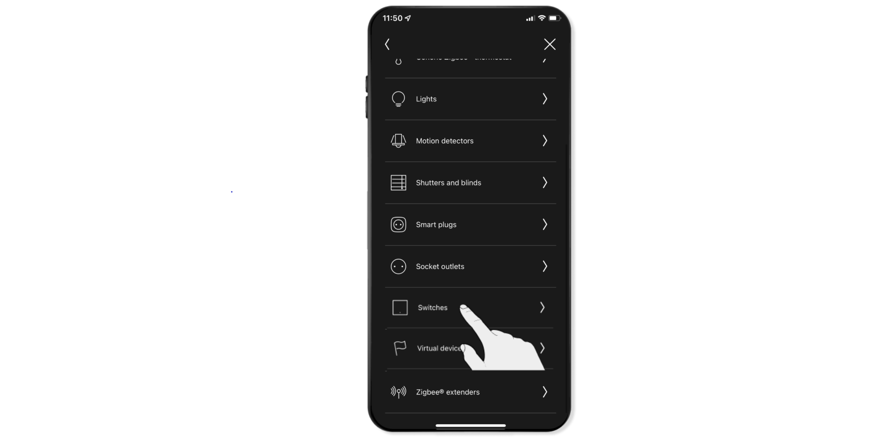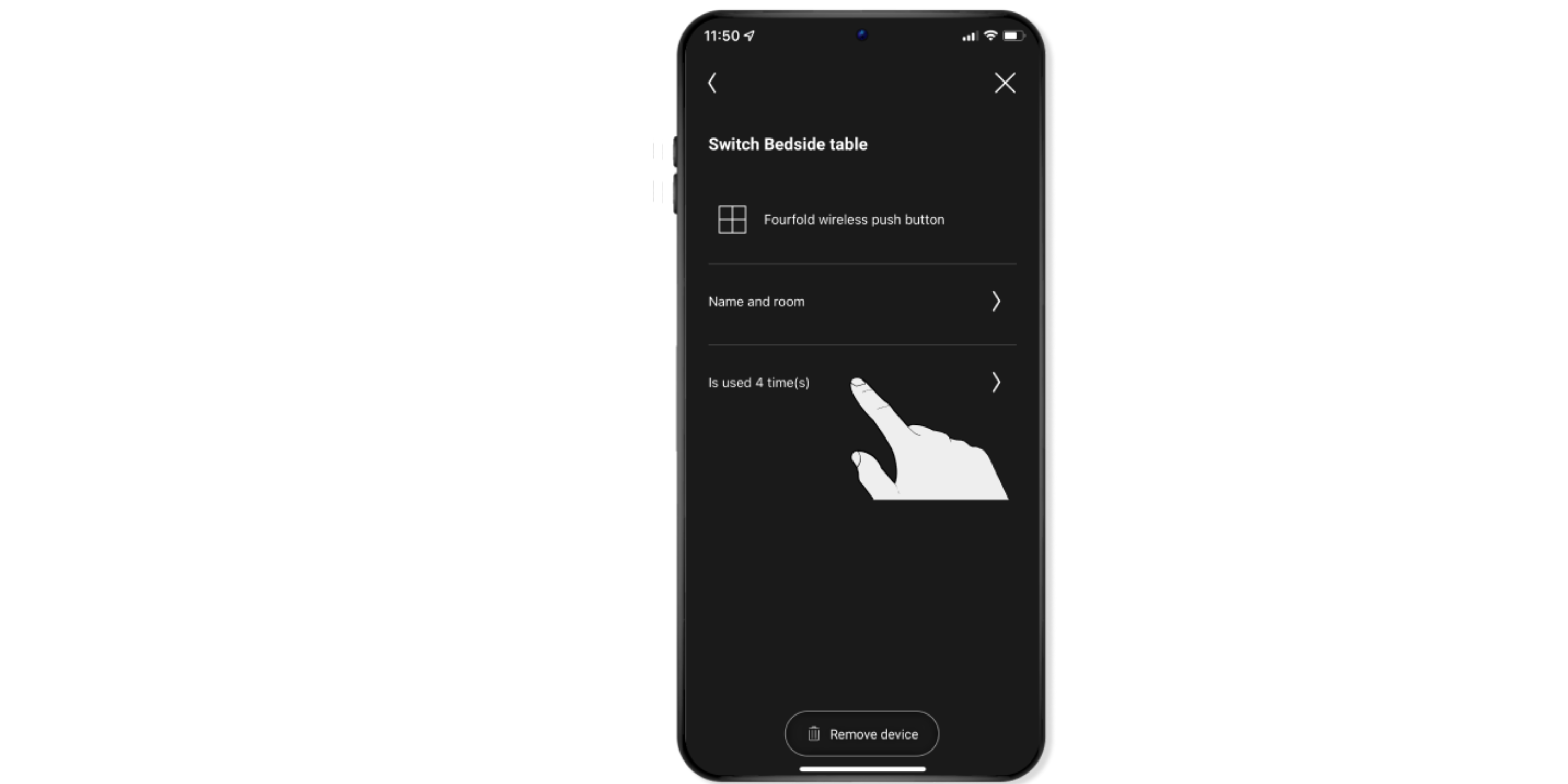 Selecteer de draadloze schakelaar uit de lijst met bestaande schakelaars.