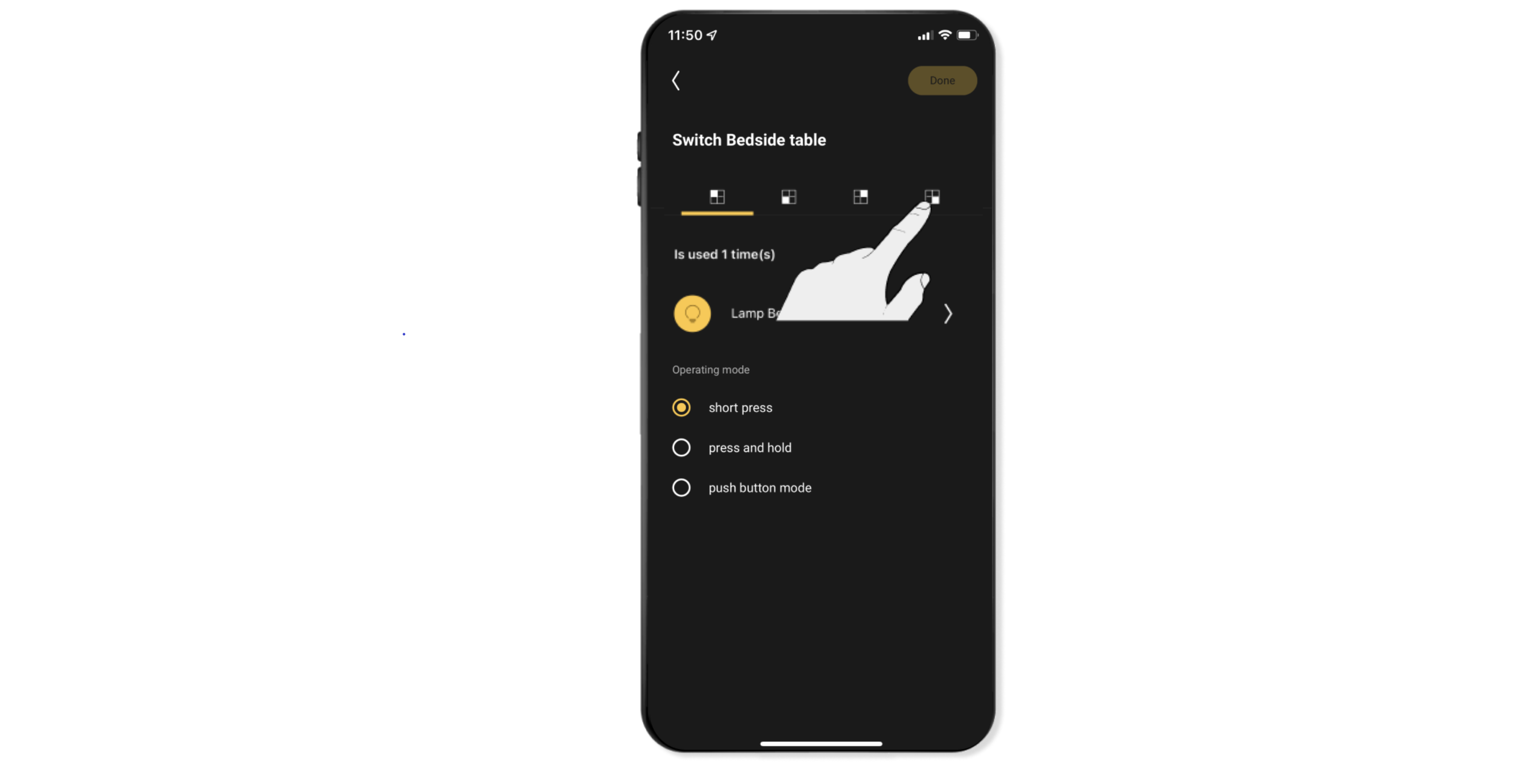 Je kunt nu een schakelaar kiezen waarmee je deze routine wilt bedienen. Kies de toets van de draadloze schakelaar die nog vrij is.