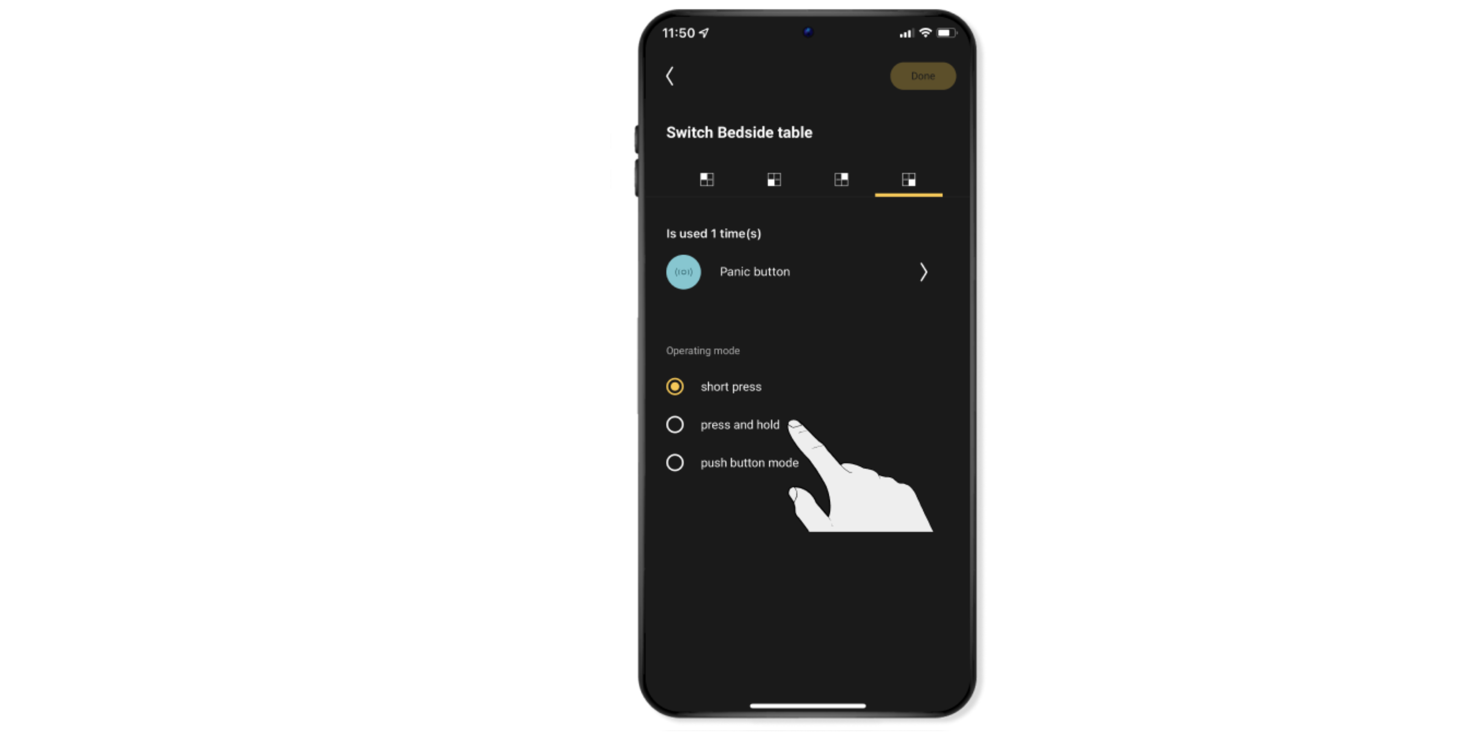 Tip: Om te vermijden dat je de waarschuwingsmodus per ongeluk inschakelt, kun je instellen dat je de toets van de draadloze schakelaar langer ingedrukt moet houden om deze routine te activeren.