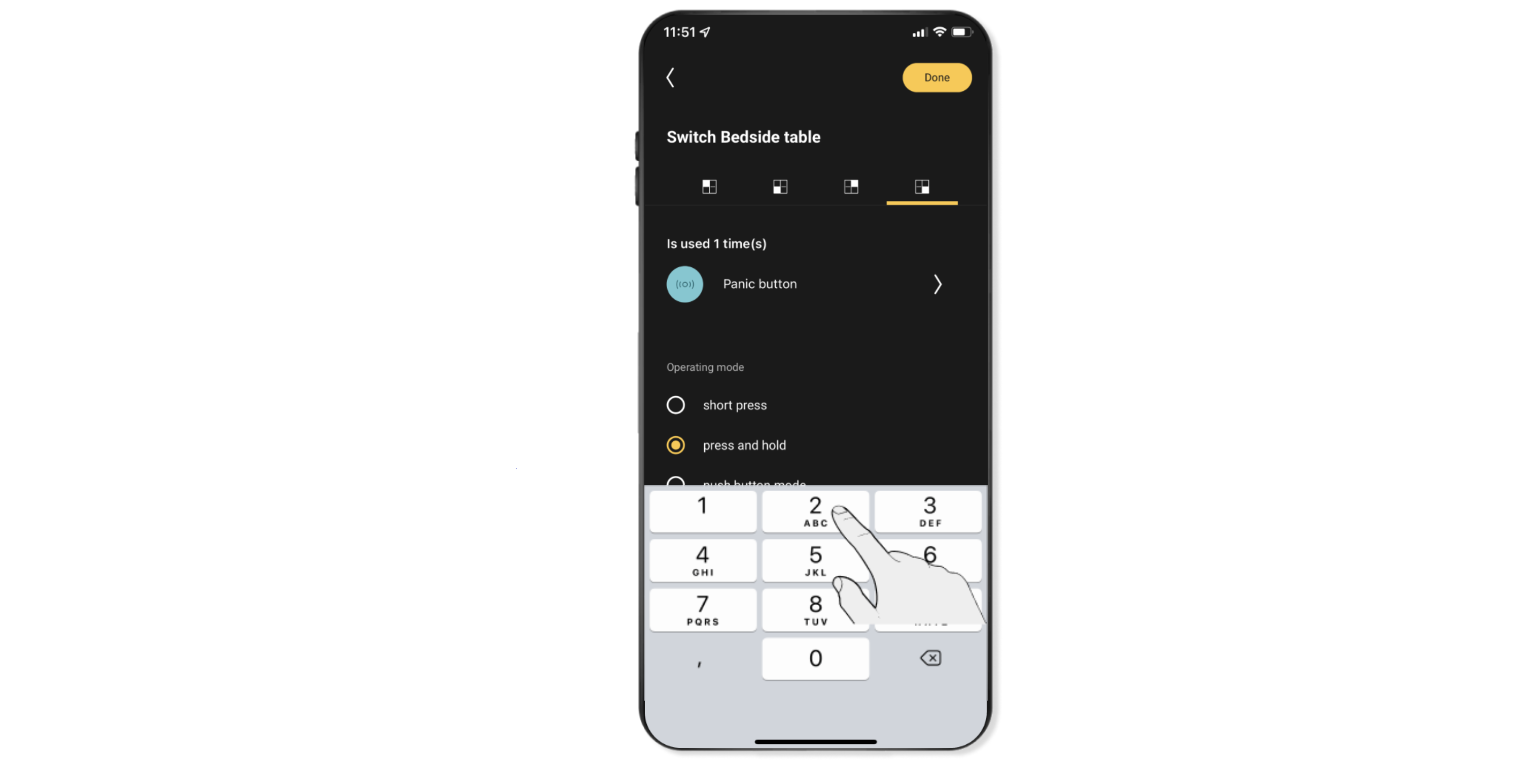 Klik op Wordt 4 keer gebruikt en kies de toets waarvoor je de waarschuwingsmodus geprogrammeerd hebt.