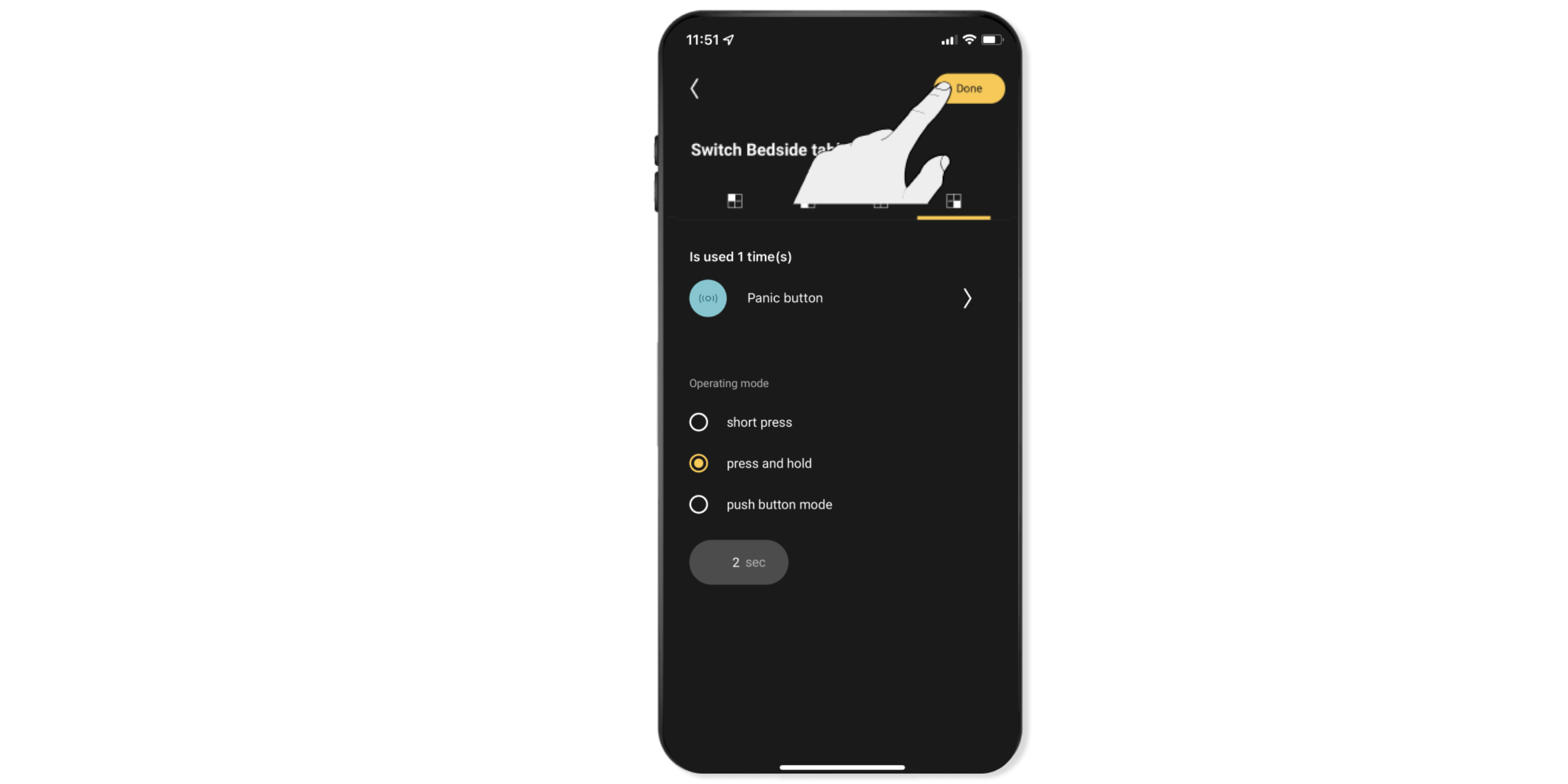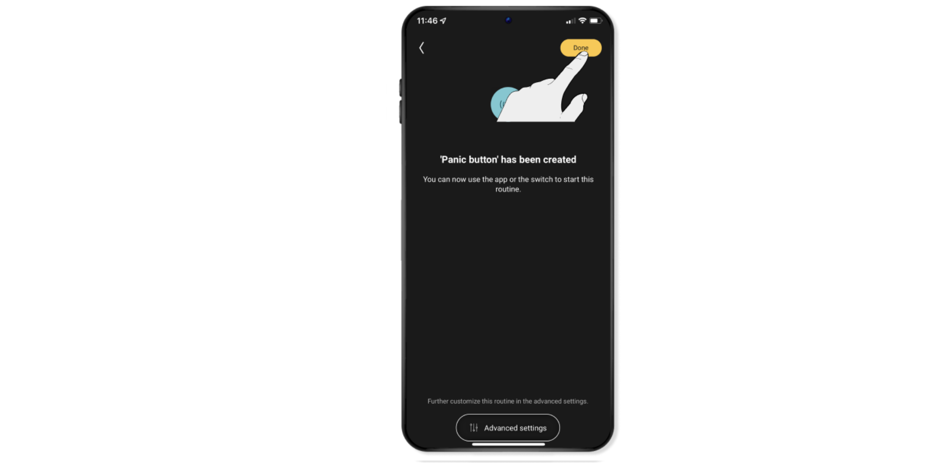 Je waarschuwingsmodus is nu aangemaakt. Klik op Klaar om deze instelling naar de draadloze slimme hub te sturen.