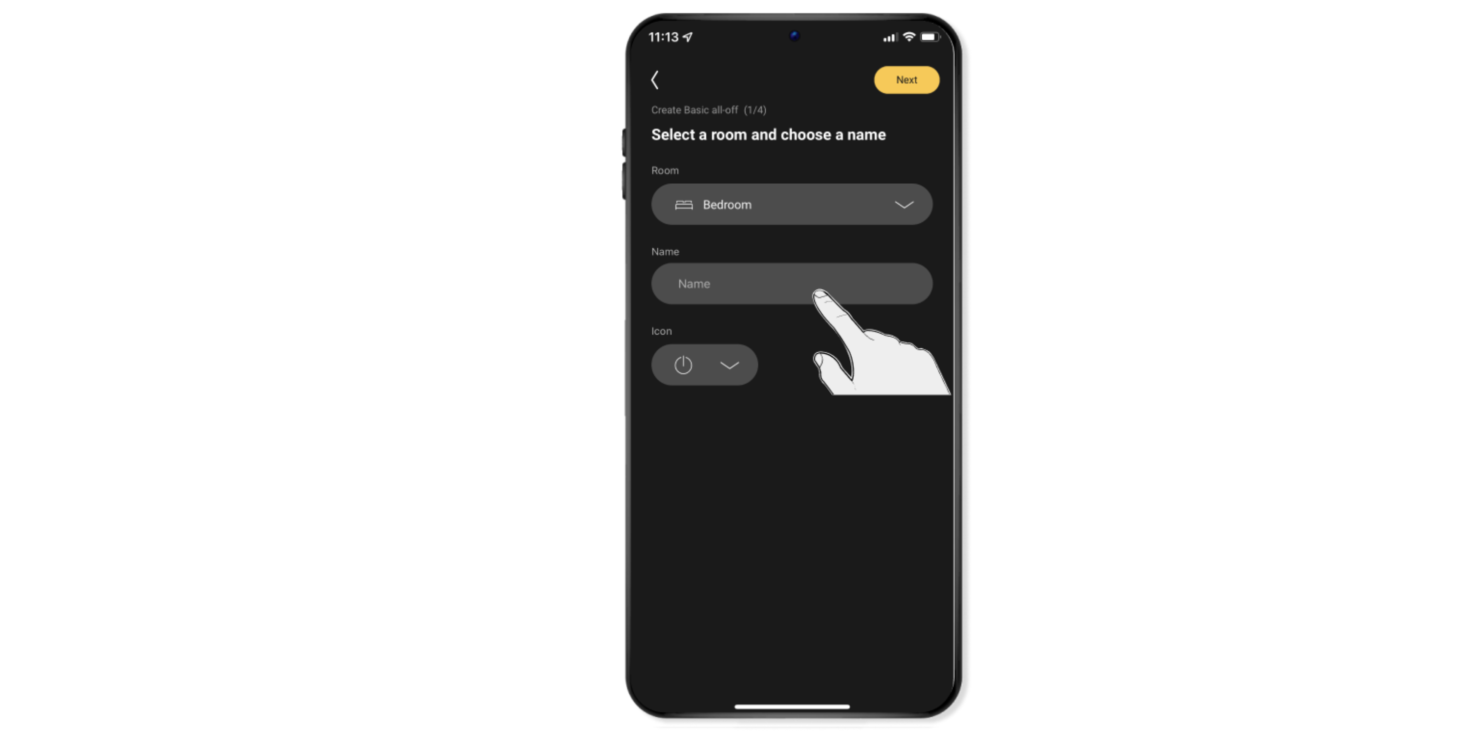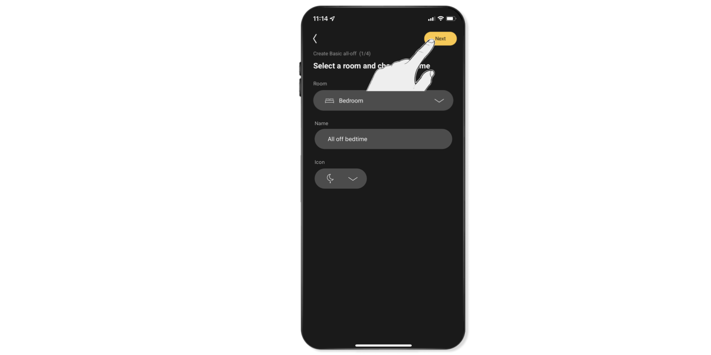 Je kunt een routine programmeren zoals een 'standaard alles uit' routine, waarmee je met één druk op een bedieningsknop (of via de app) alle verlichting kunt doven wanneer je bijvoorbeeld de woning verlaat.