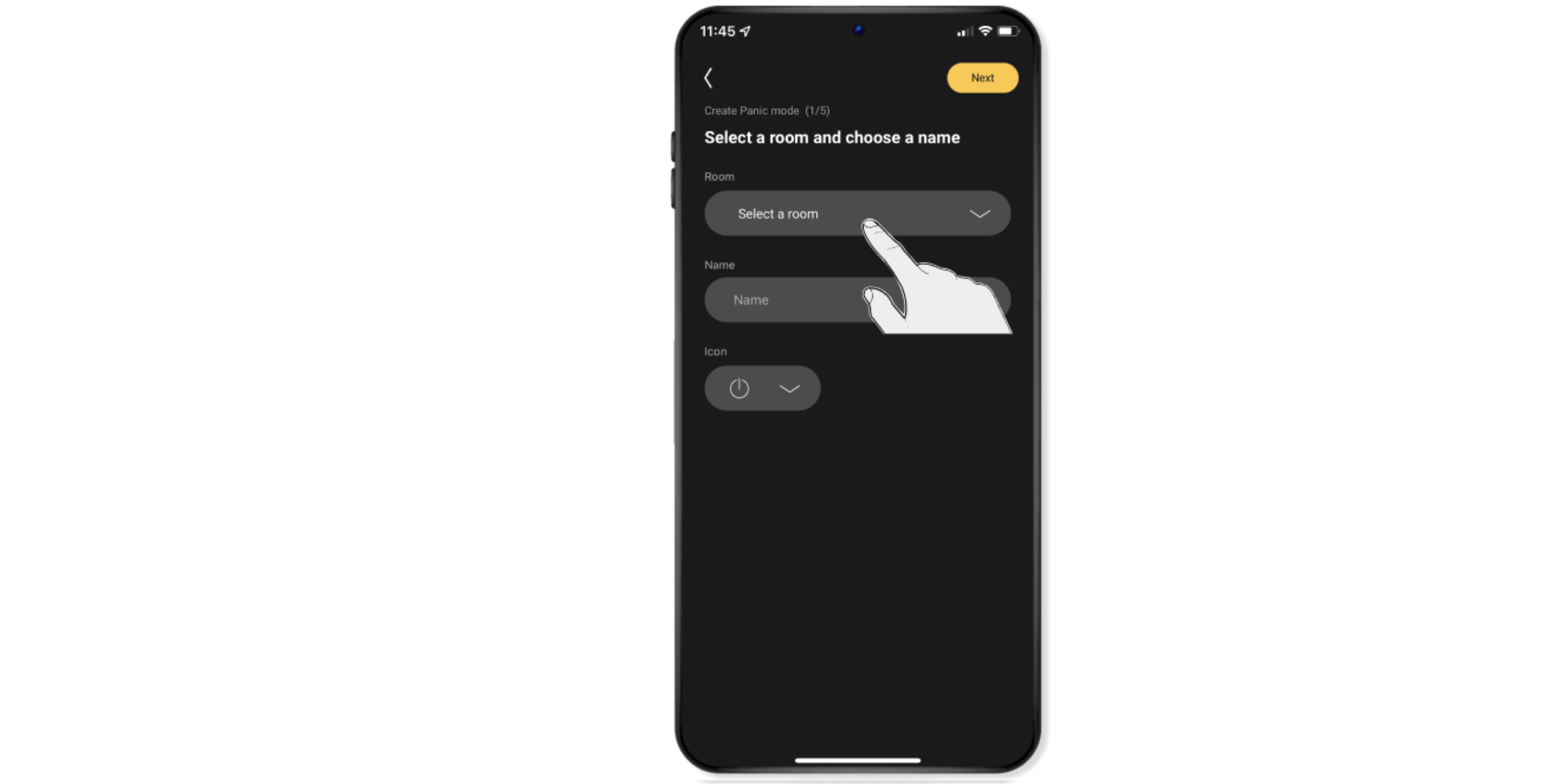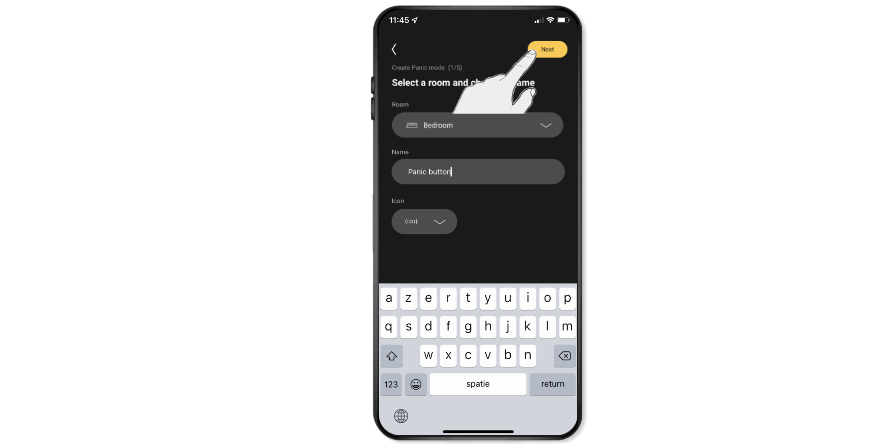 Opmerking: Je kunt op een gelijkaardige manier ook andere routines programmeren, bijvoorbeeld een waarschuwingsmodus. Gebruik hiervoor de instructie die verderop uitgewerkt is voor de laatste toets. Volg voor de overige routines de instructies in de app. Meer informatie over routines vind je in het ecosysteem.