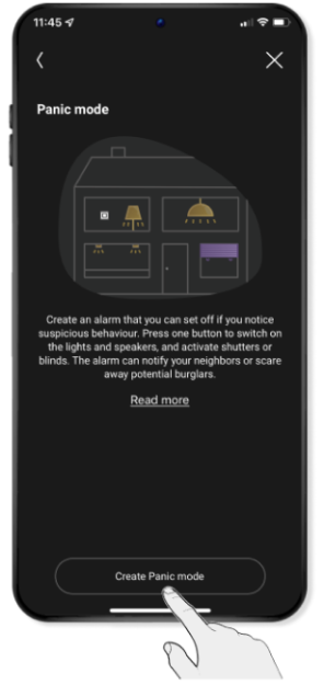 Je kunt nu voor de laatste toets een andere routine programmeren, zoals een waarschuwingsmodus waarmee je verlichting of toestellen op een ingesteld ritme laat in- en uitschakelen. Op die manier kun je de buren alarmeren of eventuele inbrekers afschrikken.