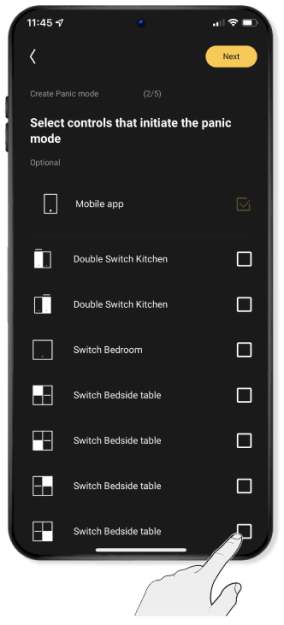 Je kunt nu een schakelaar kiezen waarmee je deze 'standaard alles uit' routine wilt bedienen. Kies de toets van de draadloze schakelaar die nog vrij is.