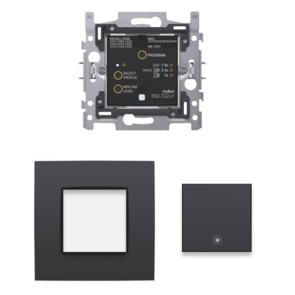 Je werkt de geconnecteerde dimmer af met een afdekplaat en een afwerkingsset met of zonder lens voor de led.