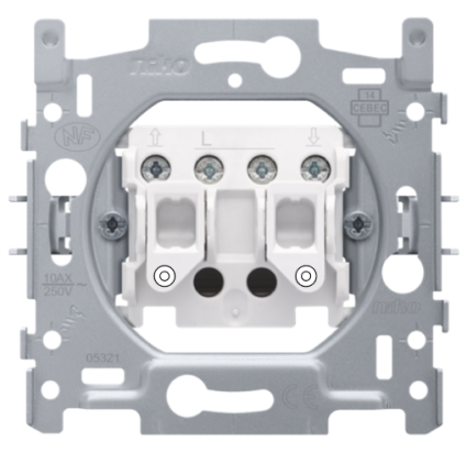 Opmerking: Hier vind je een overzicht van de meest voorkomende motorbedieningen van Niko (in het assortiment sinds 2006). Deze voorbeelden kunnen je ook helpen om oudere motorbedieningen of producten van andere merken te vervangen. Dan kan de opbouw wel anders zijn en kunnen de aansluitklemmen op andere plaatsen zitten.